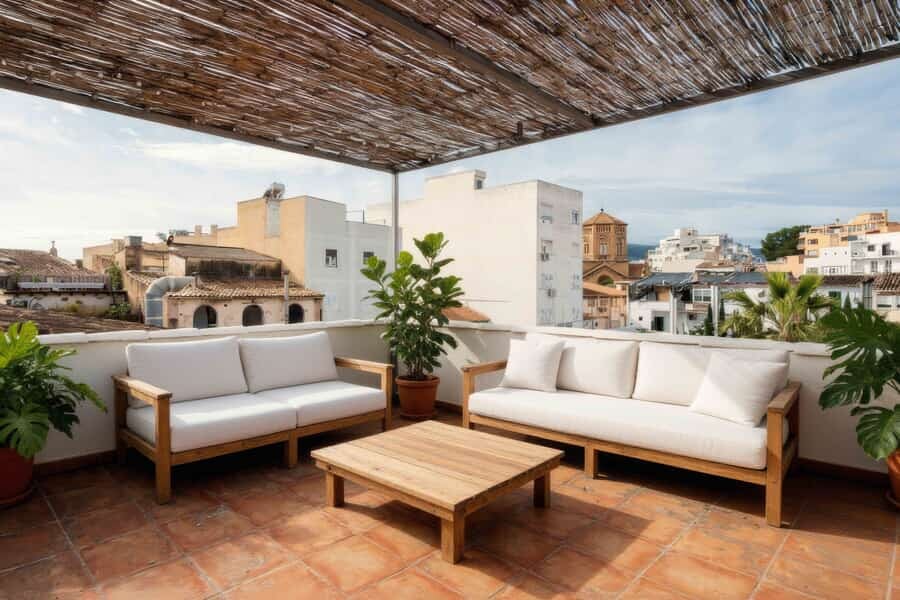 Denna oklanderligt välskötta takvåning är belägen i hjärtat av det prestigefyllda området Santa Catalina, bara ett steg från den livliga saluhallen, charmiga kaféer, välrenommerade restauranger och den glittrande strandpromenaden. Palmas förtrollande gamla stad ligger endast fem minuters promenad bort och ger enkel tillgång till allt staden har att erbjuda. Med 104 kvm boyta erbjuder bostaden en unik och välbalanserad planlösning. Det mysiga vardagsrummet med öppen spis skapar en varm och inbjudande atmosfär, medan det fullt utrustade köket är utrustat med högkvalitativa vitvaror från Miele. Två välplanerade sovrum och två badrum, varav ett en-suite, ger ett bekvämt boende. Inbyggda garderober, separat förråd och tvättutrymme, tvåglasfönster, gasvärme och luftkonditionering säkerställer komfort året runt. En höjdpunkt är den magnifika privata takterrassen om 12 kvm, perfekt för grillkvällar, umgänge med vänner eller för att njuta av Palmas avundsvärda klimat. En extra balkong utökar de utvändiga ytorna. Santa Catalina är känt för sin internationella atmosfär, sina konstnärliga kaféer och moderna restauranger samt närheten till hamnen och Paseo Marítimo. Denna takvåning är ett perfekt stadsboende eller ett elegant semesterhem som kombinerar komfort, karaktär och ett exceptionellt läge.