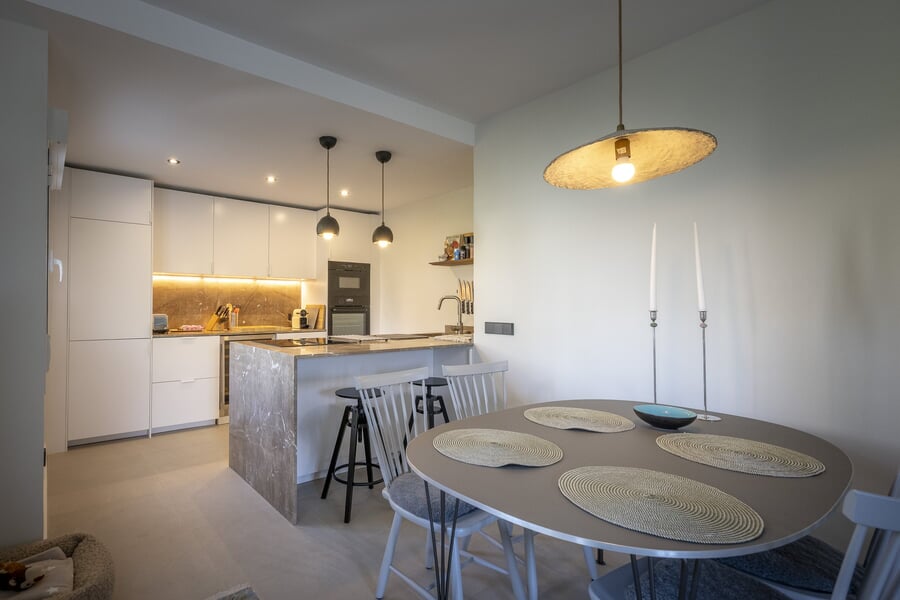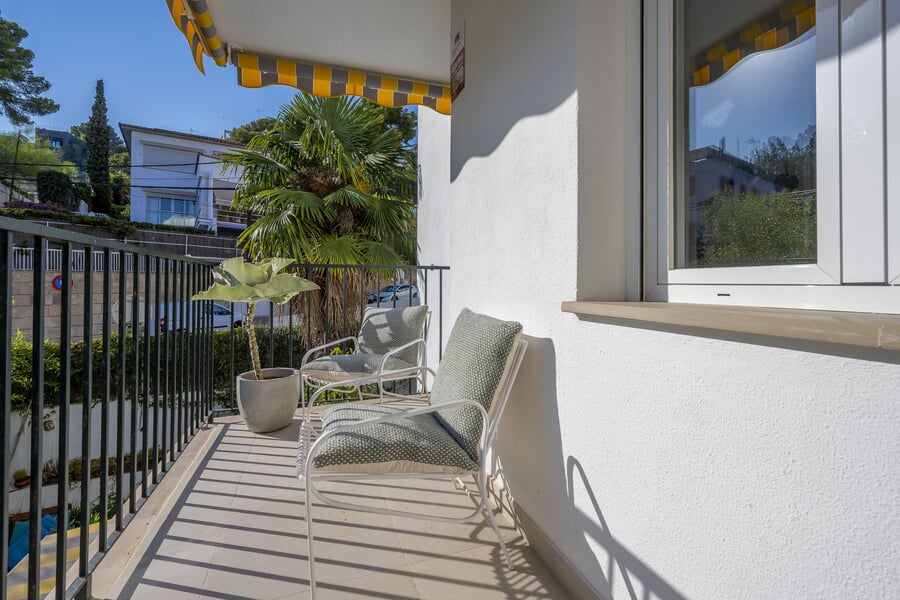 Denna vackert renoverade lägenhet ligger i det populära och livfulla området San Agustín, bara några minuter från centrala Palma. Bostaden är belägen i en välskött förening och erbjuder en perfekt kombination av stil, komfort och bekvämlighet – idealisk både som permanentboende eller semesterbostad. Lägenheten på ca 84 kvm bo yta har tre rymliga sovrum och två moderna badrum, varav det ena är en suite till master bedroom. Interiören är ljus och inbjudande med stora fönster i alla rum som släpper in rikligt med dagsljus. Från nästan varje fönster ser man ut över grönska, vilket skapar en lugn och privat känsla. Föreningen har två gemensamma takterrasser med fantastisk havsutsikt – perfekta för morgonkaffet eller en solnedgång på kvällen. I priset ingår även en egen parkeringsplats utanför huset samt ett separat förråd. Ett inflyttningsklart hem i ett av Palmas mest attraktiva bostadsområden, nära till både stränder, restauranger och bekvämligheter – men ändå med ett lugnt läge omgiven av grönska. Till salu EXKLUSIVT med BUY A HOME MALLORCA